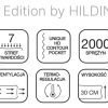 Unique HD Contour Pocket Spring to inteligentny system stworzony z 2000 sprężynek w jednym materacu. Bardzo wysokie sprężyny (18cm!) odczytują kontury ciała, jego ruchy i zmiany pozycji gwarantując maksymalne dopasowanie do anatomii ciała. Technologia zapewnia najwyższe możliwe zagęszczenie zwoi o małej średnicy. Gwarantuje progresywne i solidne wsparcie całego ciała oraz prawidłowe ułożenie kręgosłupa. Dzięki zastosowaniu sprężyn o tak imponującej wysokości, materac jest niezwykle wszechstronny. To doskonały wybór zarówno dla osób lżejszych jak i cięższych, dla osób wyższych jak i niższych, dla par o dużej różnicy wagowej i różnych typach sylwetek. To wysoce spersonalizowany, luksusowy komfort dla najbardziej wymagających użytkowników. 7 stref uzyskano stosując sprężyny o różnej twardości. Ergonomiczne wsparcie ciała to jeden z kluczowych elementów zdrowego snu i warunek skutecznej regeneracji.