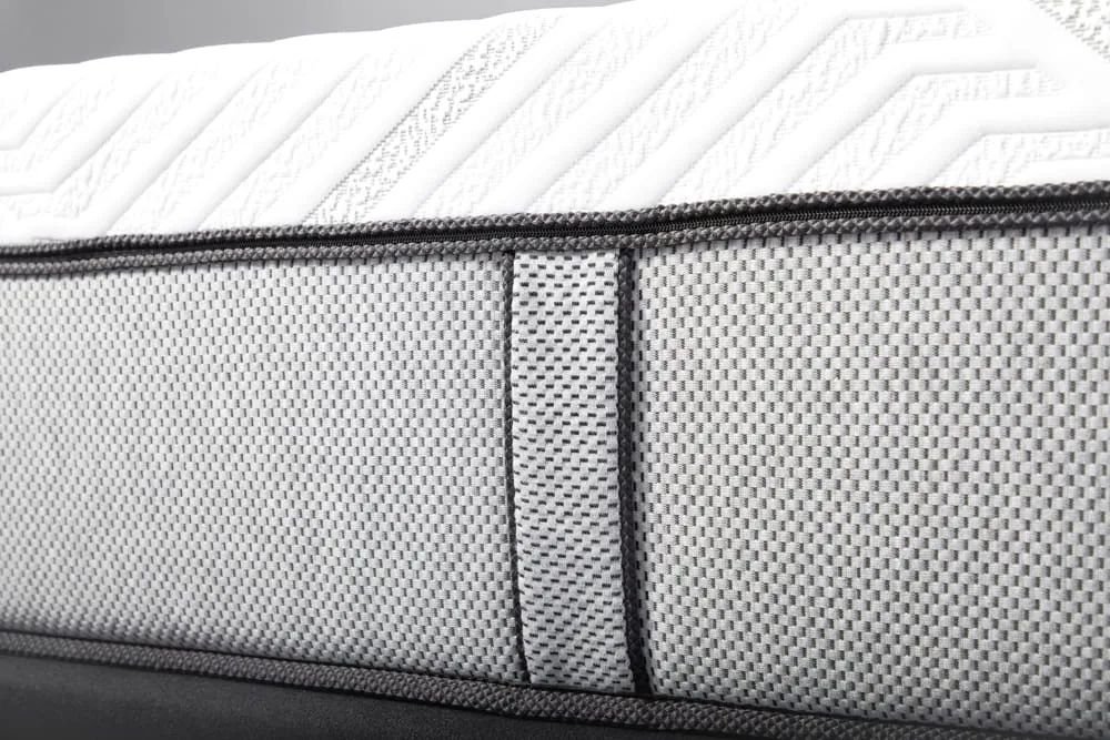 Pokrowiec Glamour to harmonijne połączenie luksusu i funkcjonalności. Jego boki zostały starannie obszyte miękkim welurem w eleganckim odcieniu szarości z delikatnie zdobioną, prążkowaną lamówką. Górna warstwa, wykonana z grubej, pięknie tłoczonej tkaniny o śnieżnobiałym kolorze, wyróżnia się nie tylko estetyką, ale także innowacyjnymi rozwiązaniami. Technologia Purissimo®NTL eliminuje alergeny, takie jak sierść zwierząt, pyłki i roztocza, dzięki wykorzystaniu kapsułkowych probiotyków, naturalnych mikroorganizmów. Dodatkowo, apretura Climattress reguluje temperaturę, dzięki mikrokapsułkom dwufazowym. Pokrowiec zapewnia uczucie chłodzenia wraz ze wzrostem temperatury ciała, a także ciepła, gdy temperatura ciała spada. To wszystko gwarantuje nieprzerwany komfort snu i idealną temperaturę ciała przez całą noc. Spód materaca został wyłożony innowacyjnym materiałem 3D, który pozwala na swobodny przepływ powietrza wewnątrz materaca.