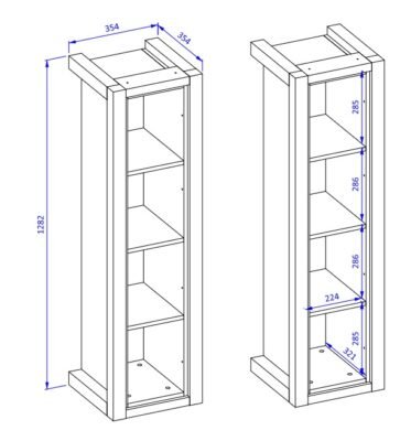 - Półki – płyta meblowa z krawędziami oklejonymi z 4 stron