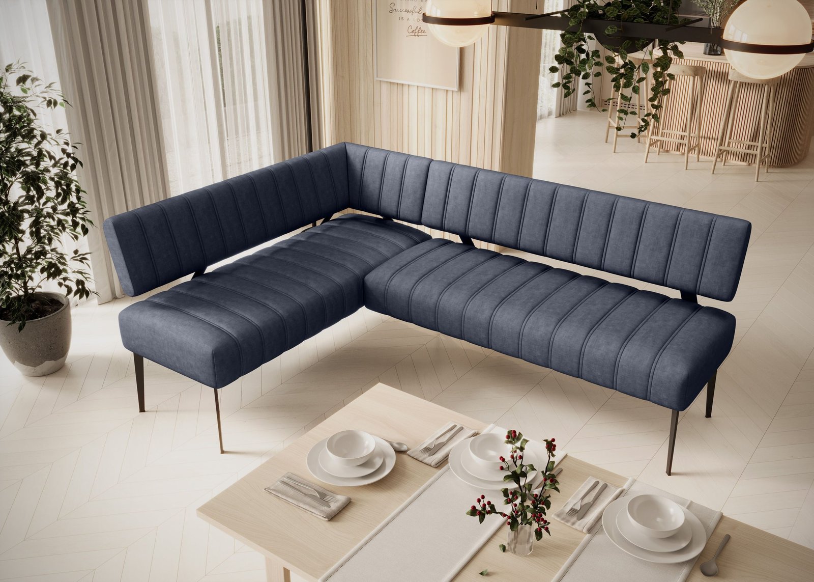ALTO (NAROŻNIK KUCHENNY) – Tapicerowany narożnik kuchenny w nowoczesnej odsłonie. Jego design sprawia, że odnajdzie się zarówno w kuchni, jak i w jadalni czy salonie. Komfortowe użytkowanie zapewnia wzmocnione na metalowej konstrukcji oparcie. Delikatne przeszycia na siedzisku oraz wysokie nogi dodają lekkości i sprawiają, że mebel zyskuje wielu zwolenników.
