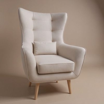 AMORE pikowany fotel uszak z podnóżkiem w stylu skandynawskim – PRODUCENT