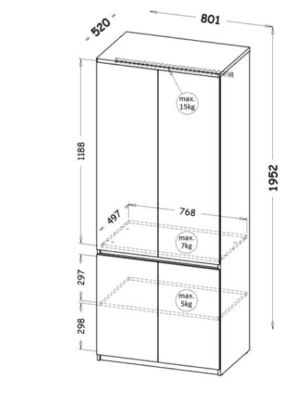 ARCA – To praktyczna i interesująca propozycja.Ozdobne fronty szafy wykonano z płyt laminowanych oklejonych folią PCV w wersji matowej. Wykonanie: Korpusy i fronty zostały zrobione wysokiej jakości płyty wiórowej laminowanej, odpornej na zabrudzenia oraz zarysowania. Wszystko zostało zabezpieczone odpornym na uszkodzenia obrzeżem ABS