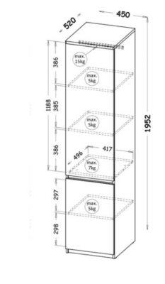 - Półki – krawędź przednia półek oklejana ABS