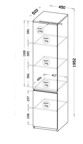 - Wysokość: 1952 mm