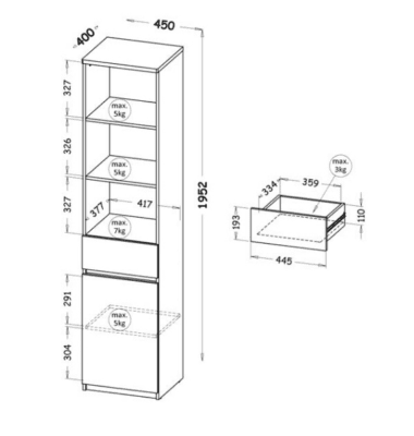 ARCA-A3 Regał młodzieżowy z szufladą 45cm