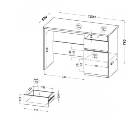 ARCA biurko młodzieżowe z szufladą 120×52 wotan, biały