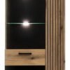 ARIS 07-08 wąska witryna trzydrzwiowa na nóżkach z podświetleniem i lamelami 70 cm DĄB EVOKE – CZARNY
