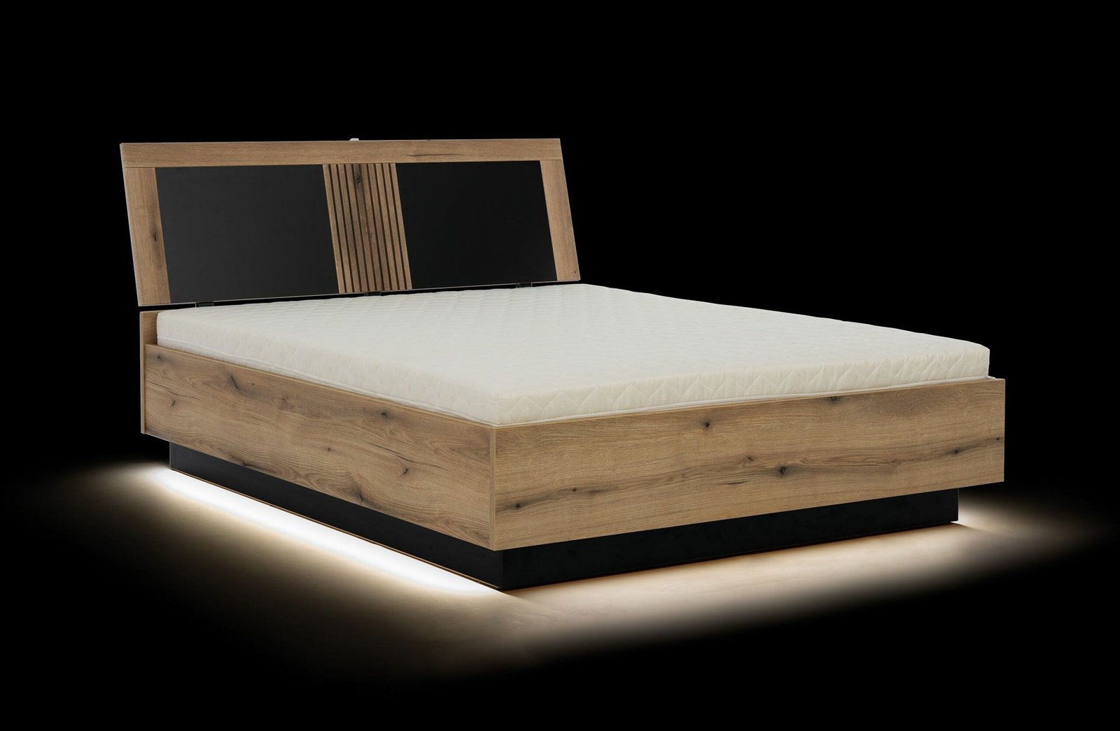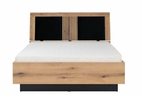 ARIS 14 łóżko dwuosobowe z pojemnikiem i podświetleniem 140-160-180 cm DĄB EVOKE – CZARNY