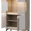 Meble z kolekcji ASTON doskonale pasują zarówno do nowoczesnych, minimalistycznych wnętrz, jak i klasycznych aranżacji. Połączenie Dębu Cremona z KASZMIREM tworzy delikatny kontrast, który dodaje wnętrzom subtelności i nowoczesności. Ich neutralna kolorystyka sprawia, że łatwo dopasować je do różnych stylów. Czarne nóżki dodają meblom eleganckiego i luksusowego charakteru, podkreślając naturalne piękno dębowych dodatków. Opcjonalne podświetlenie to doskonały sposób na podkreślenie ich estetyki i funkcjonalności. Dodatkowo meble wyposażone są w zawiasy z systemem cichego domyku oraz hartowane szkło szyb frontowych.