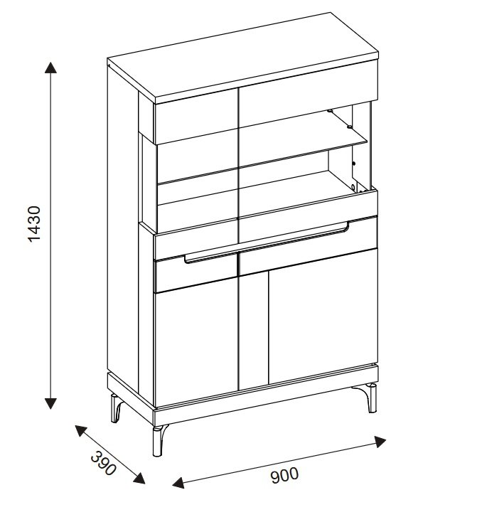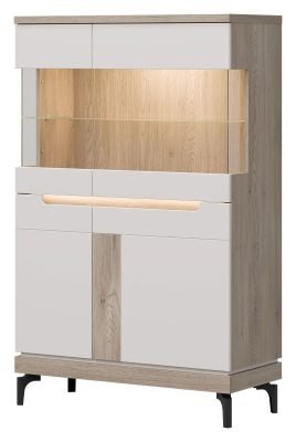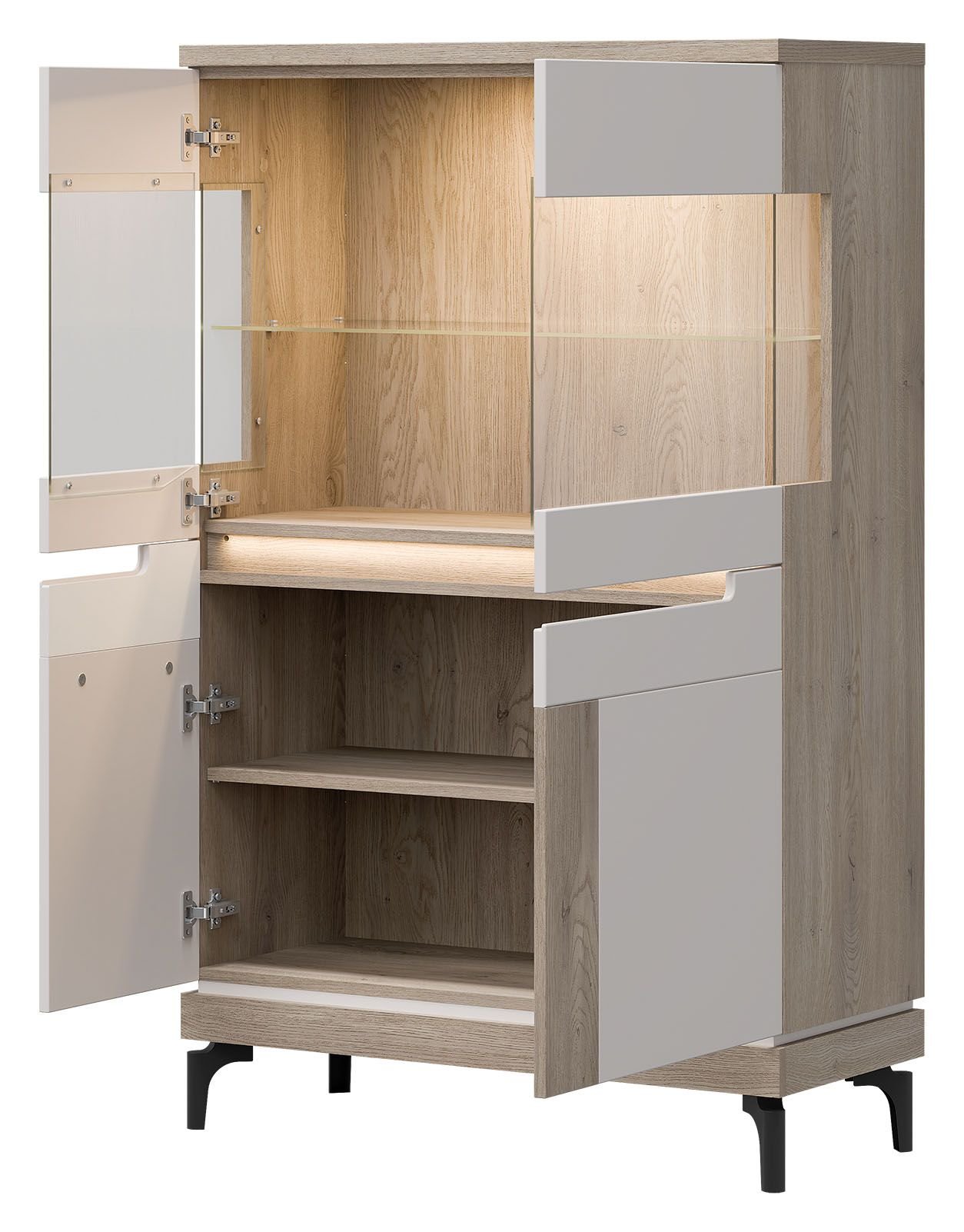 ASTON 04 czterodrzwiowa witryna na nóżkach z podświetleniem 90 cm DĄB CREMONA-KASZMIR