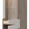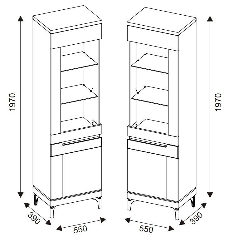 Meble z kolekcji ASTON doskonale pasują zarówno do nowoczesnych, minimalistycznych wnętrz, jak i klasycznych aranżacji. Połączenie Dębu Cremona z KASZMIREM tworzy delikatny kontrast, który dodaje wnętrzom subtelności i nowoczesności. Ich neutralna kolorystyka sprawia, że łatwo dopasować je do różnych stylów. Czarne nóżki dodają meblom eleganckiego i luksusowego charakteru, podkreślając naturalne piękno dębowych dodatków. Opcjonalne podświetlenie to doskonały sposób na podkreślenie ich estetyki i funkcjonalności. Dodatkowo meble wyposażone są w zawiasy z systemem cichego domyku oraz hartowane szkło szyb frontowych.