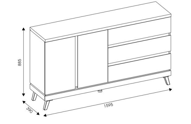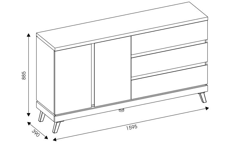 ATE 03 dwudrzwiowa komoda na nóżkach z szufladami 160 cm DĄB KAMIENNY- CZARNY