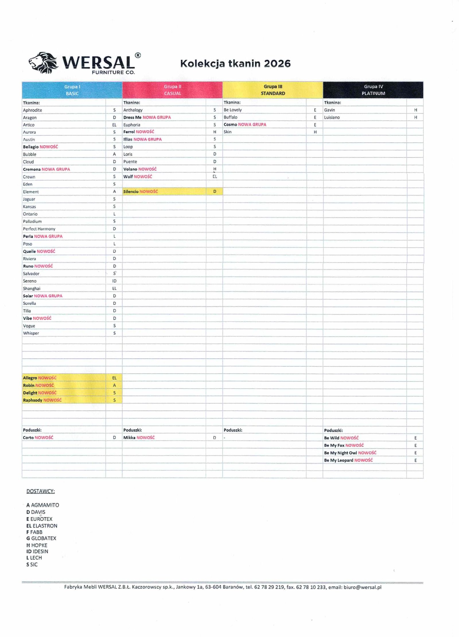 Nazwy i rodzaje materiałów z podziałem na grupy cenowe: