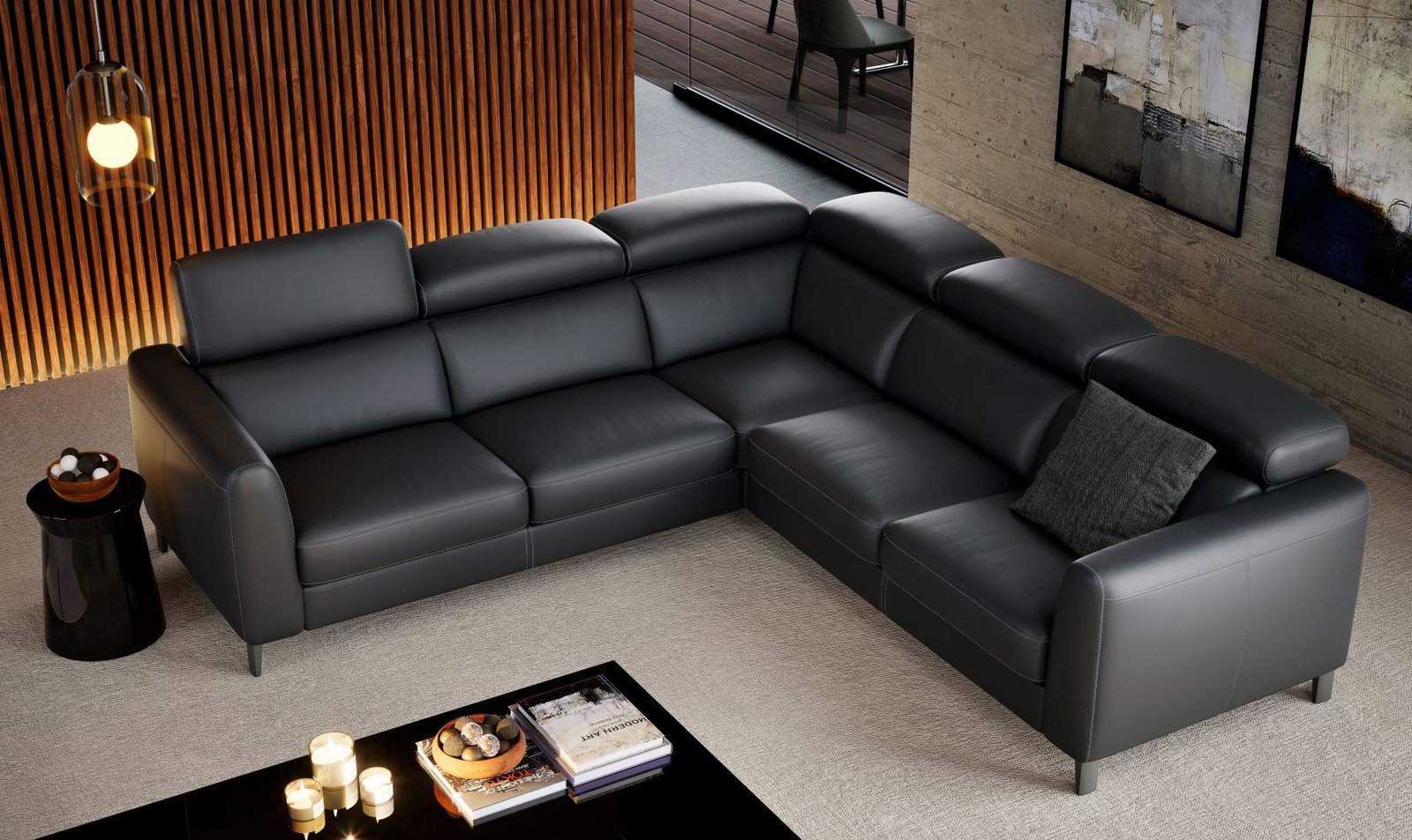BOSTON – narożnik modułowy z funkcją spania i ruchomymi zagłówkami 255 x 257 cm – Bydgoskie Meble