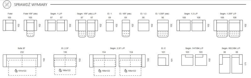 • siedzisko: sprężyna falista B + pianka wysokoelastyczna,