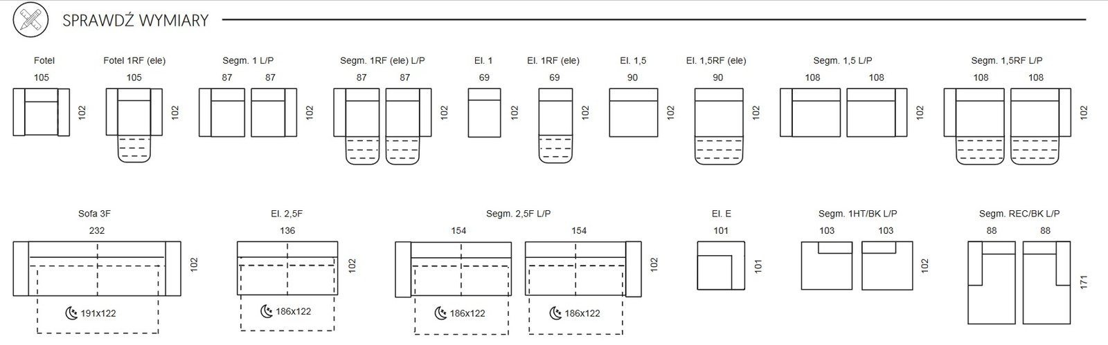 • powierzchnia spania: 122 x 188 cm