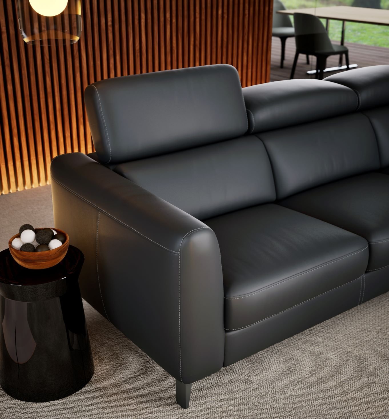 Niespotykanie komfortowa oraz ponadczasowa kolekcja Boston wyposażona została w funkcję spania oraz pojemnik na pościel. Duży atut funkcjonalny oraz wizualny podnoszący komfort wypoczynku stanowią regulowane zagłówki. Mebel na wysokiej drewnianej nodze prezentuje się lekko i stylowo.