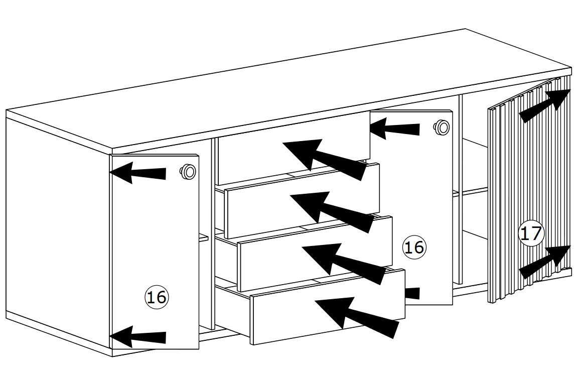 CALI – Komoda C-20 wymiary: (szerokość: 182,7 cm x głębokość: 40,6 cm x wysokość: 85,4 cm)
