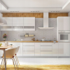 Fronty w kuchni wykonane zostały z foliowanej płyty MDF o grubości 18 mm o połyskliwym wykończeniu . Prosta forma frontów nada wnętrzu elegancji i wyrafinowania.