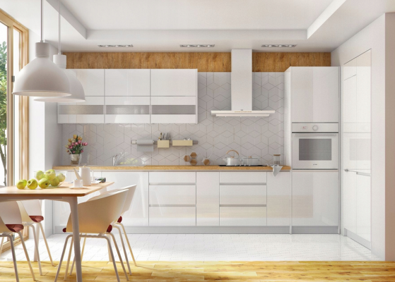 KUCHNIA W STYLU NOWOCZESNYM Z FRONTAMI NA BIAŁY WYSOKI POŁYSK DLA OSÓB CENIĄCYCH NOWOCZESNY DESIGN W PROSTEJ FORMIE – STYLOWA ELEGANCJA