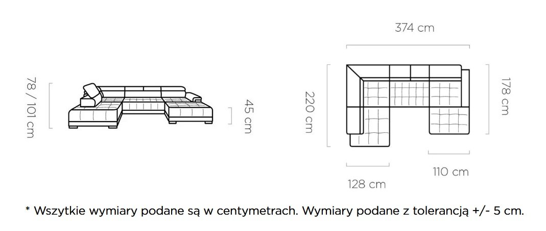 - wymiary podane z tolerancją +/- 5 cm