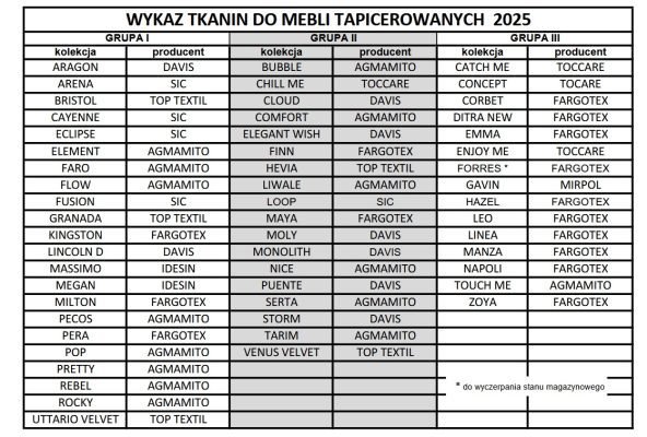 • tył mebla tapicerowany wybraną tkaniną