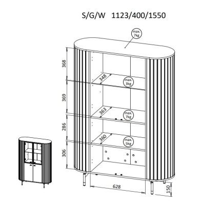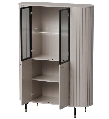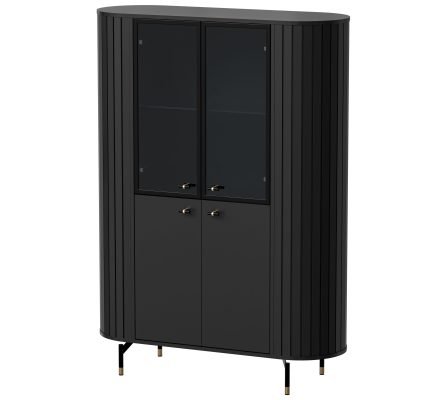 CONVEX 01 czterodrzwiowa witryna z przeszkleniem i LED na wysokich nóżkach 110 cm