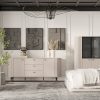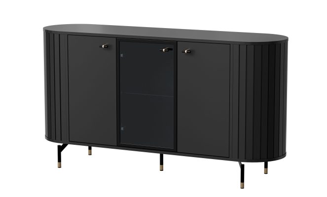 CONVEX 03 trzydrzwiowa komoda z przeszkleniem na wysokich nóżkach 150 cm – GLAMOUR
