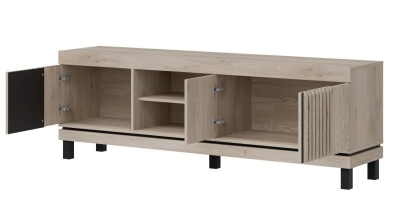 COTTA 02 – trzydrzwiowa szafka RTV na nóżkach, szafka pod telewizor, lamele – 183 cm