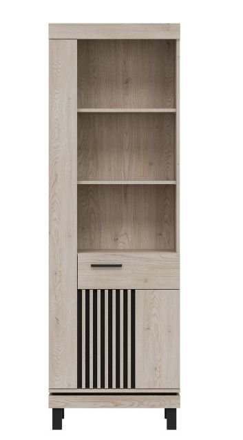 COTTA 08 – wąski, jednodrzwiowy regał na nóżkach z półkami i lamelami – 64 cm