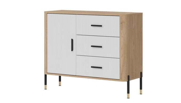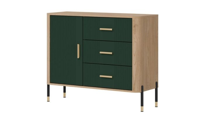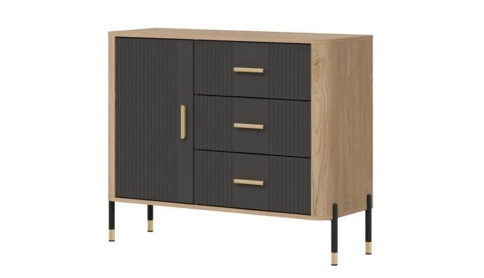 Złote lub czarne uchwyty i detale na nogach dodają całości elegancji i lekkości, doskonale wpisując się w klimat nowoczesnych, loftowych i skandynawskich aranżacji. Designerski akcent, który przyciąga wzrok, solidna konstrukcja na metalowych nogach ze złotym wykończeniem – stabilność i styl w jednym gwarantujące komfort użytkowania i luksusowy wygląd