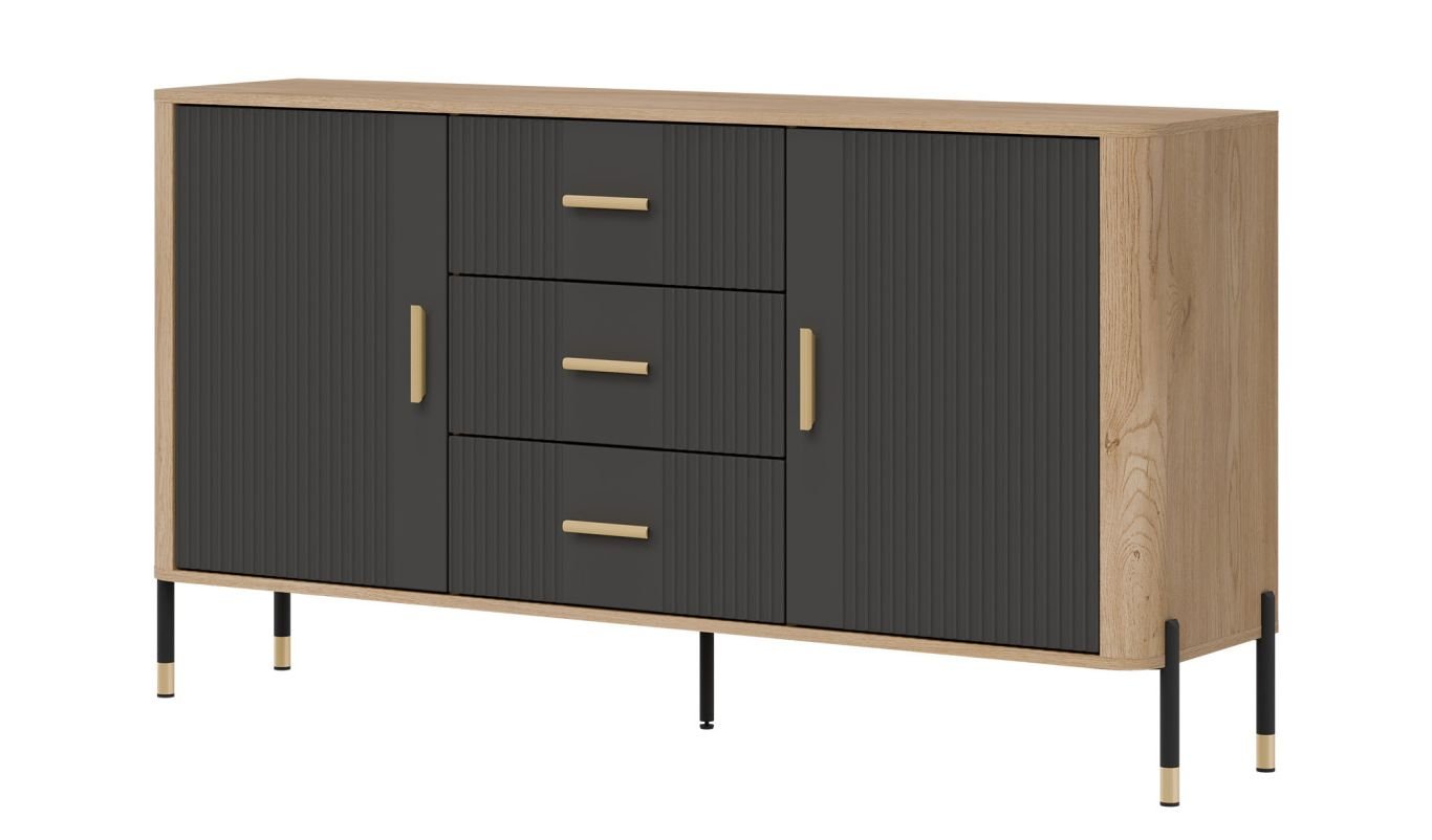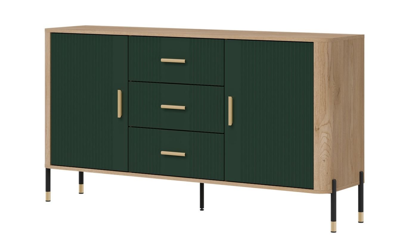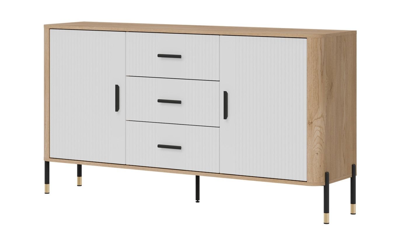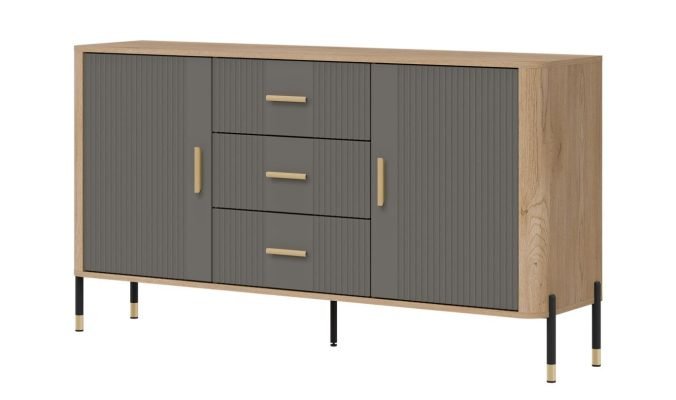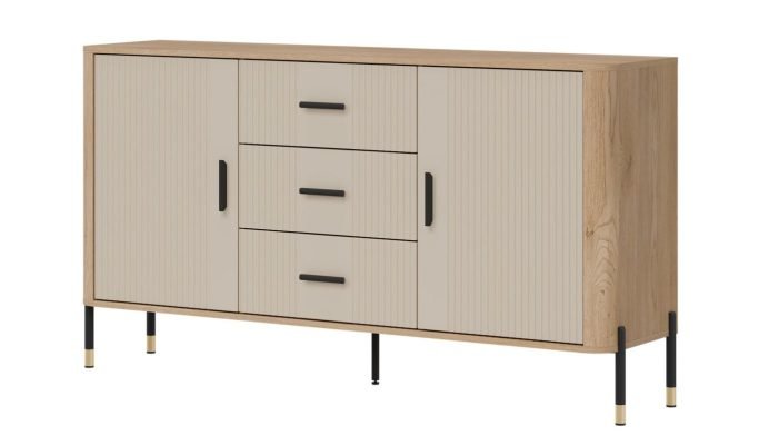 Złote lub czarne uchwyty i detale na nogach dodają całości elegancji i lekkości, doskonale wpisując się w klimat nowoczesnych, loftowych i skandynawskich aranżacji. Designerski akcent, który przyciąga wzrok, solidna konstrukcja na metalowych nogach ze złotym wykończeniem – stabilność i styl w jednym gwarantujące komfort użytkowania i luksusowy wygląd