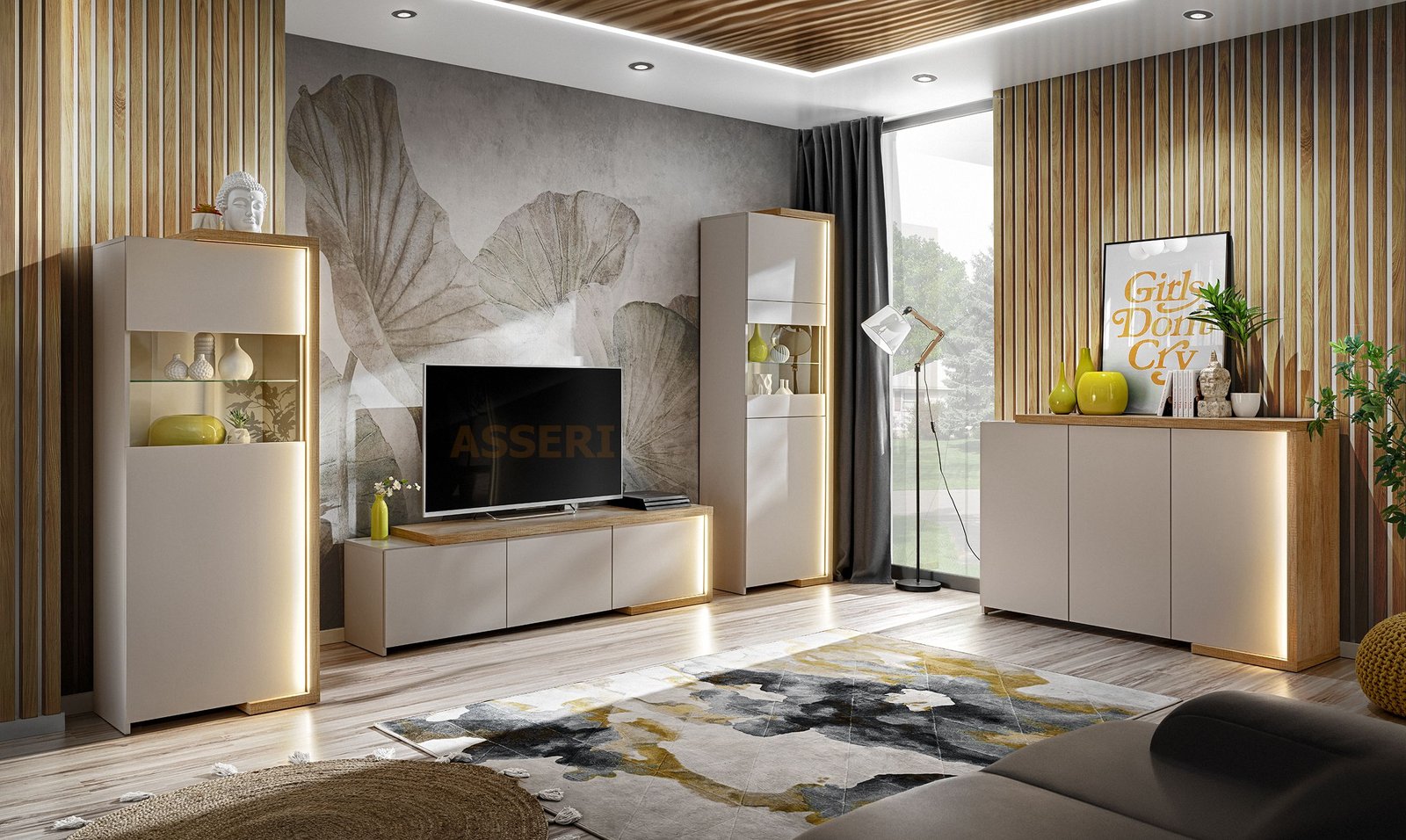 DASAR trzydrzwiowa komoda RTV z podświetleniem 180 cm DĄB GRAND, KASZMIR MAT