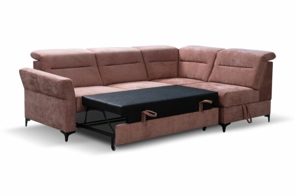 DENVER – narożnik z pojemnikiem na pościel oraz funkcją spania na metalowych nóżkach.