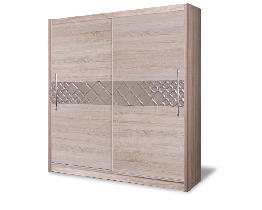 Duża i pojemna szafa z drzwiami przesuwnymi. Mimo nie dużej głębokości, pozwala na przechowywanie większej ilości rzeczy. Istnieje również opcja wstawienia kontenerka z trzema szufladami, dzięki czemu zyskujemy niezwykle funkcjonalną szafę w nowoczesnym stylu.