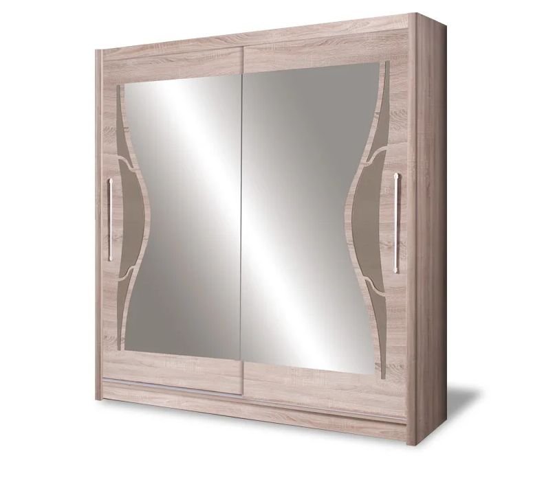 DOME szafa przesuwna z ozdobnymi frontami i lustrem 150 cm DĄB SONOMA