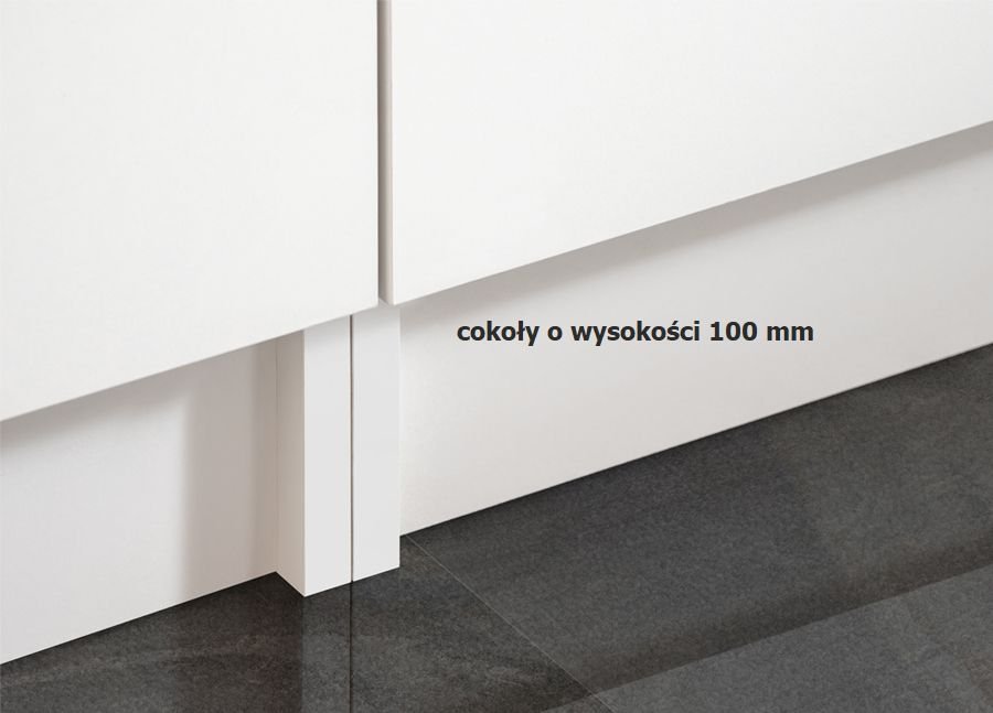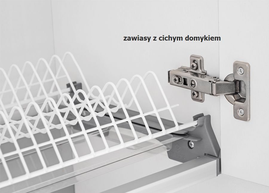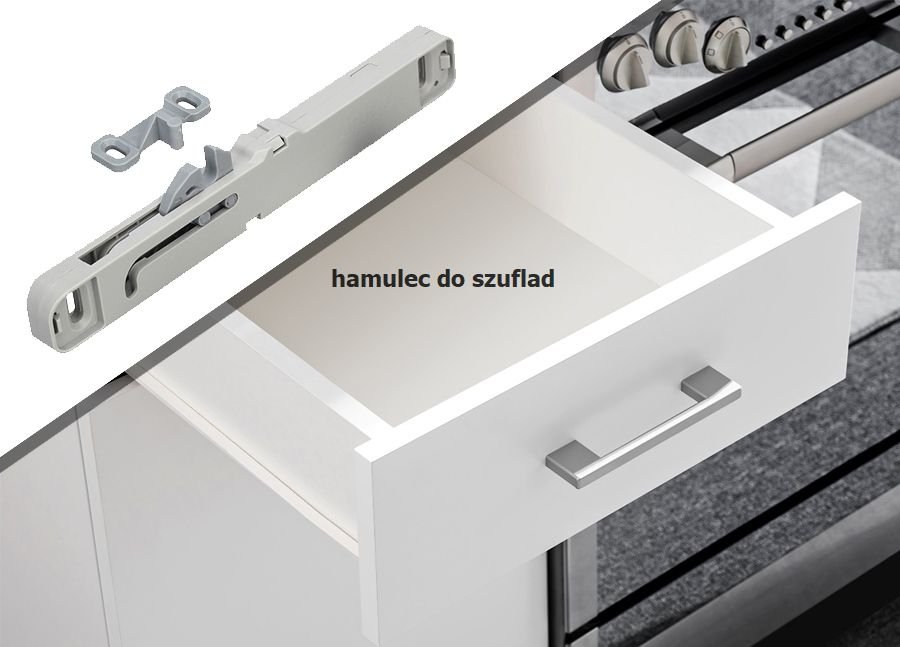 - szuflady wykonane z płyty korpusowej z prowadnicą rolkową białą (opcja zakupu hamulca do szuflady)