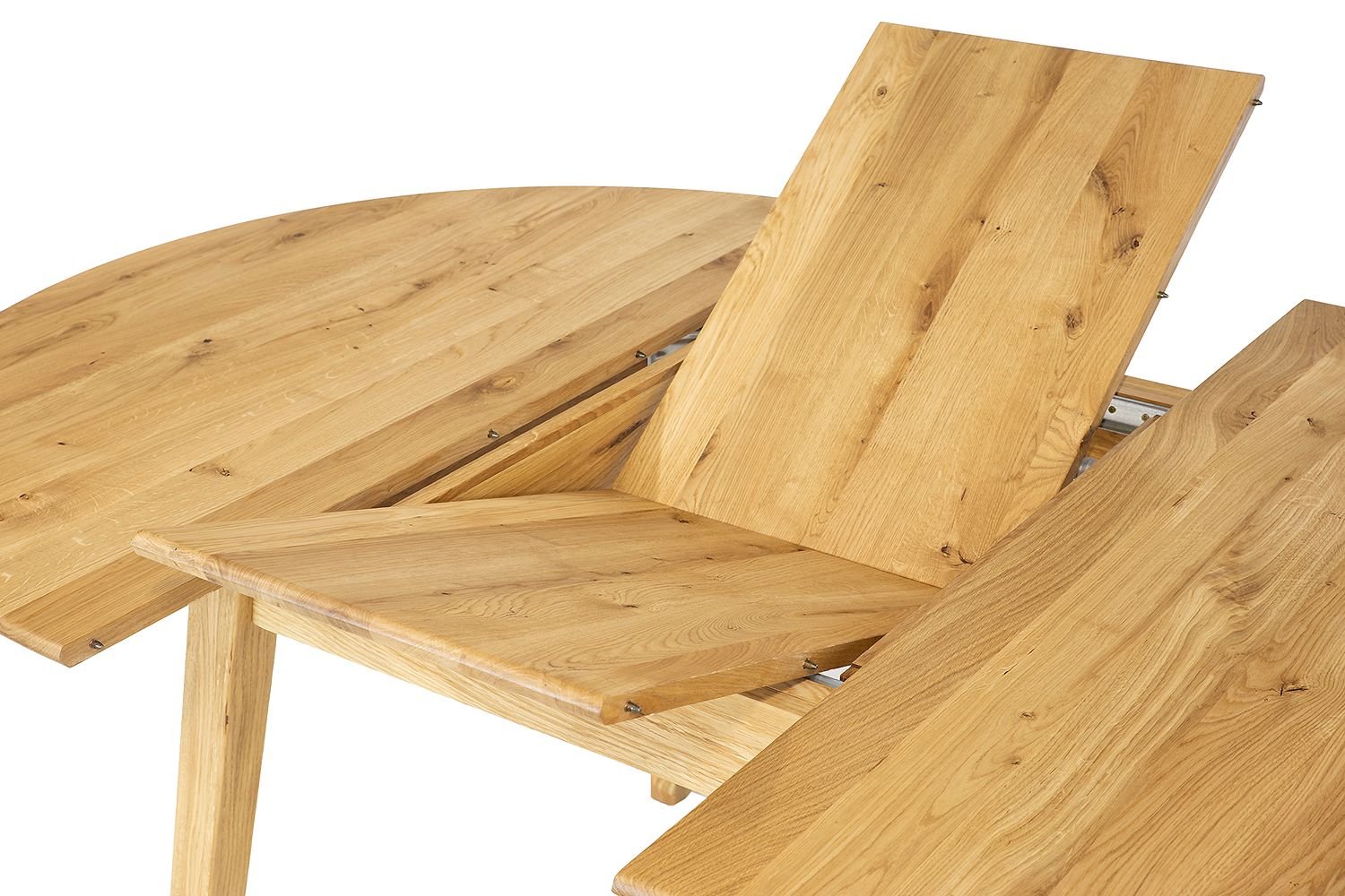 Rozkładany stół ERGO, wykonany z litego drewna dębowego.