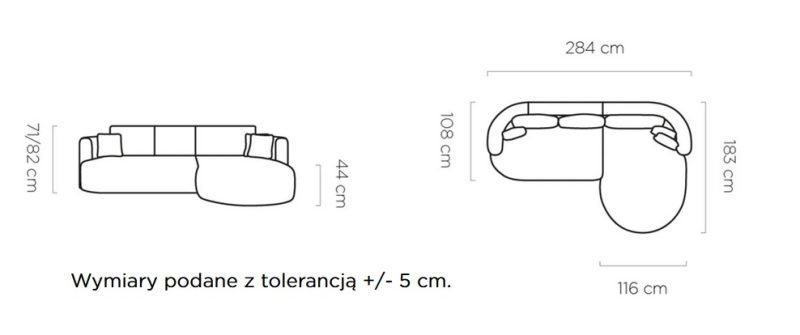 FIORE S narożnik z funkcją spania DL i pojemnikiem 284 x 183 cm