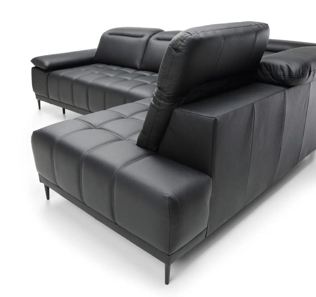 Narożnik wykonany z wysokiej jakości skór naturalnych. Szeroka gama skór do wyboru pozwoli na dopasowanie narożnika do indywidualnych preferencji klienta. Wygodne siedzisko i regulowane zagłówki zapewnią komfort w każdej sytuacji. Delikatne czarne nóżki mebla dodają mu lekkości i sprawiają, że narożnik nie jest jedną wielką bryłą . Focus to połączenie klasyki z nowoczesną awangardą, dzięki temu mebel wkomponowuje się w każdą aranżację.