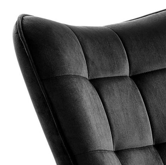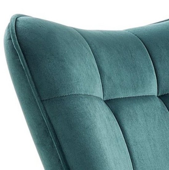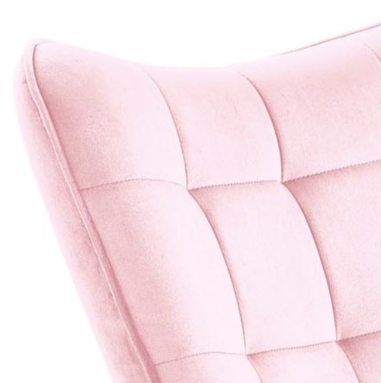 Ten wysokogatunkowy materiał nadaje powierzchni fotela wyjątkowej gładkości i miękkości, co sprawia, że siedzenie w nim jest bardzo przyjemne. Charakterystyczną cechą tkanin aksamitnych jest efekt delikatnego połyskiwania, co można zaobserwować przy odpowiednim oświetleniu. A także zmienianie tonacji koloru wraz ułożeniem włosków pod wpływem dotyku. Dla lepszego efektu wizualnego oparcie zostało upiększone starannie wykonanym pikowaniem, które dodaje eleganckiego uroku.