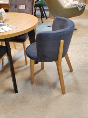 Krzesło tapicerowane wykonane  z litego drewna dębowego, dzięki czemu jest trwałe i stabilne. Idealne połączenie drewna i tapicerowanego siedziska sprawia,że całość  wspaniale się komponuje.