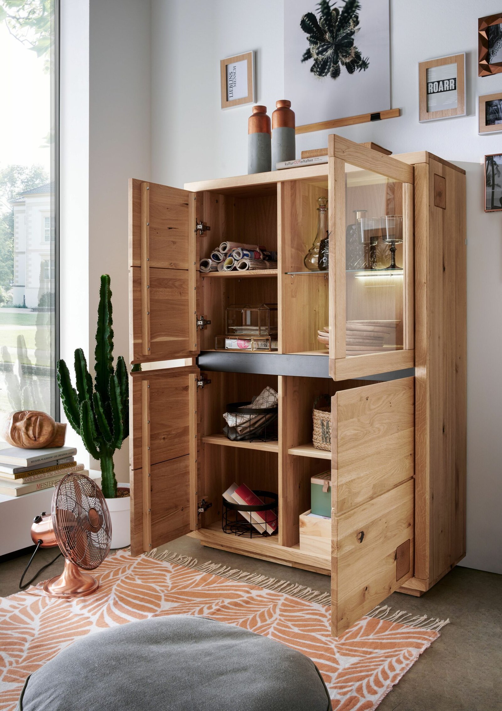 Kredens FURNI wykonany jest z litego drewna dębowego. Mebel zaprojektowany z myślą o aranżacji w stylu loft oraz nowoczesnym. Zestawienie naturalnej barwy drewna z czarnymi elementami jest bardzo efektowne oraz oryginalne. Kredens wniesie do salonu lub jadalni charakter i doda aranżacji wyrazu.