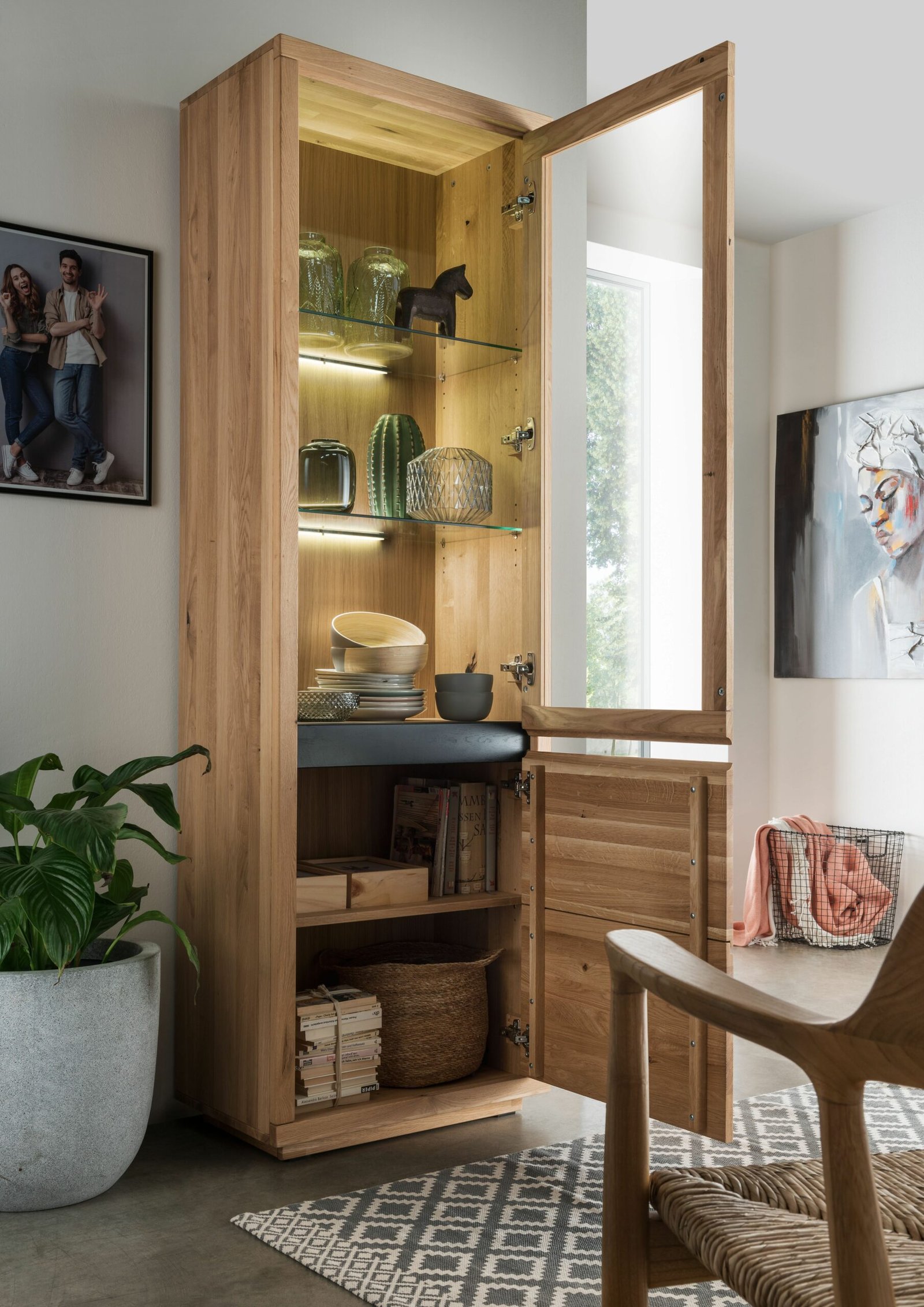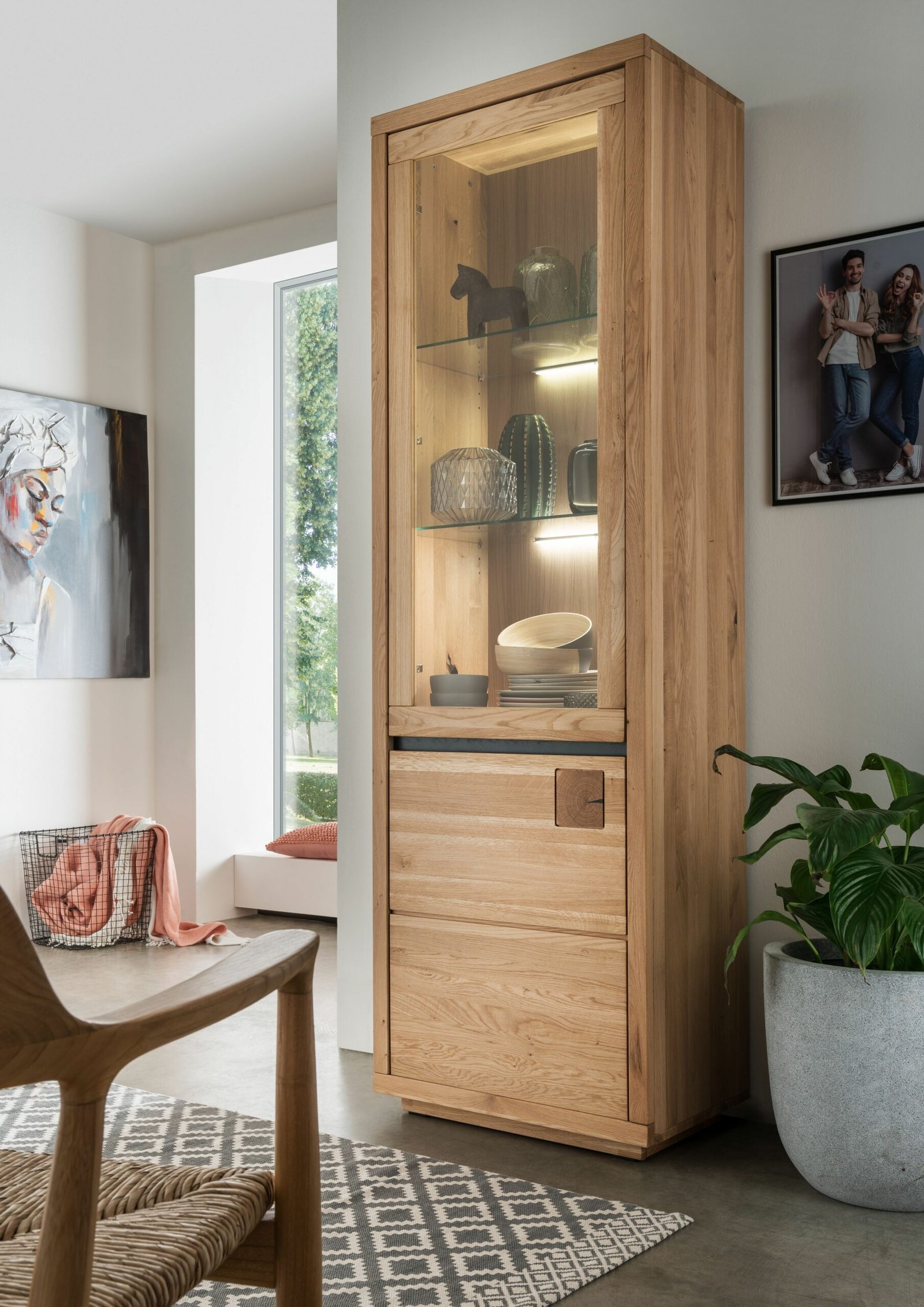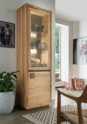 FURNI – witryna dębowa 65 cm z podświetleniem
