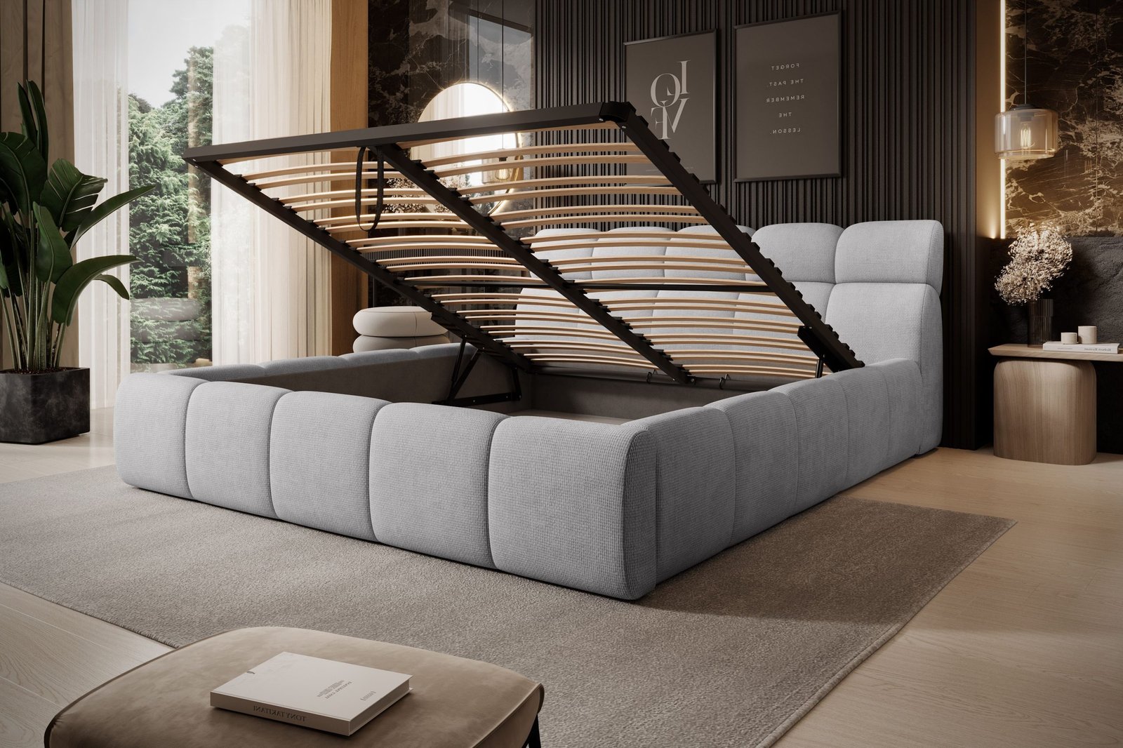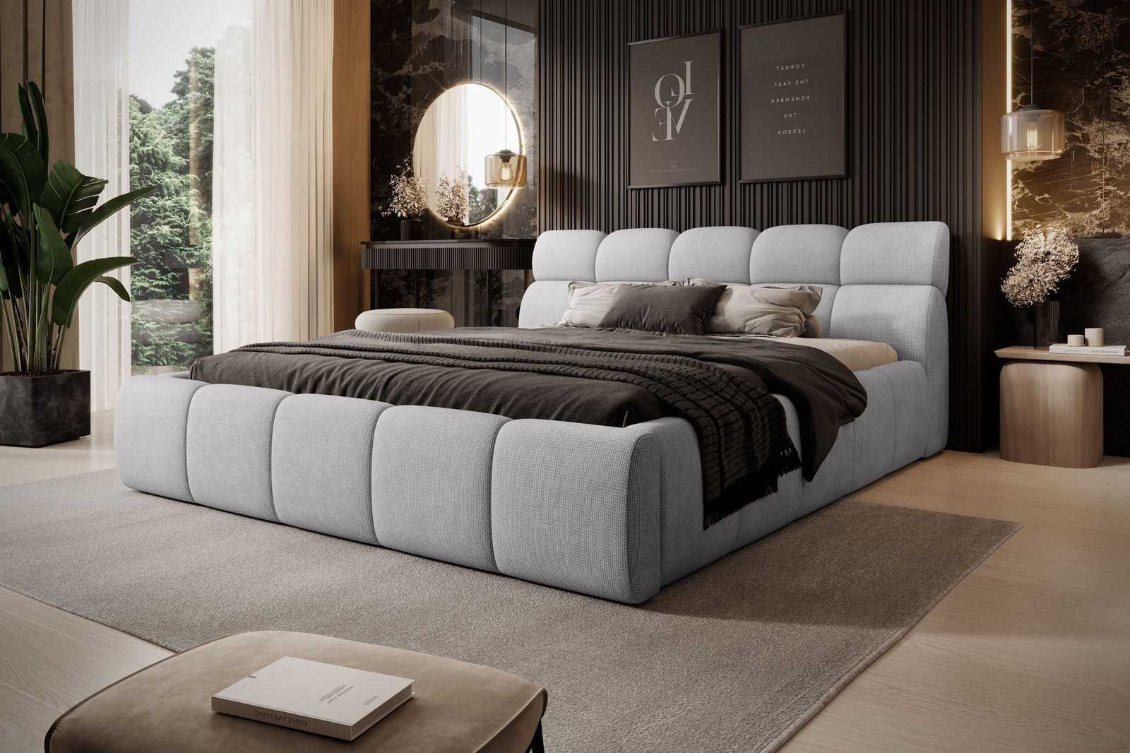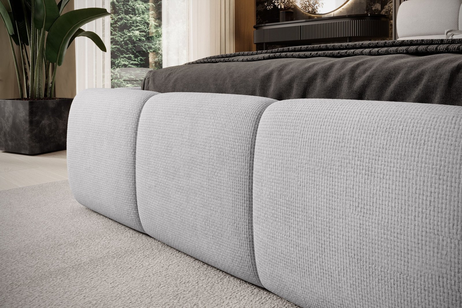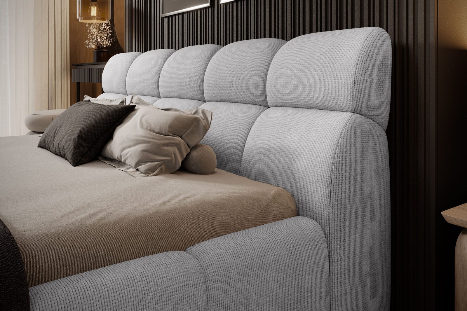 GIULIA – model, obok którego nie da się przejść obojętnie. Zachwyca swoją elegancką i nowoczesną formą, dzięki czemu staje się centralnym punktem każdej sypialni. To niezwykłe łóżko charakteryzuje się licznymi, głębokimi przeszyciami i pikowaniami, które nadają mu stylowy wygląd. Łóżko GIULIA posiada praktyczny pojemnik na pościel, co zapewnia dodatkowe miejsce do przechowywania. Niespotykana forma przyciąga wzrok, dzięki czemu pomieszczenie nabiera wyjątkowego charakteru.