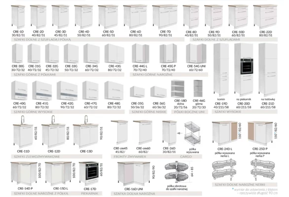 W ofercie również inne wymiary szafek, dzięki którym zaprojektujesz swoją wymarzoną kuchnię w stylu GLAMOUR: