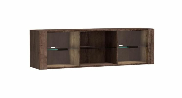 Wisząca półka, która świetnie wpasuje się do pomieszczenia i je uzupełni. Posiada szklane drzwiczki oraz półki, które czynią niesamowitą. Półka posiada metalowe uchwyty oraz możliwość dołączenia oświetlenia LED. Zamiast szklanych frontów, można zastosować pełne z płyty.