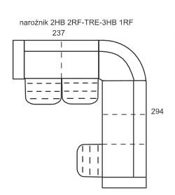 INES – narożnik na nóżkach z manualną funkcją relax 237 x 294 cm 2RF (2RFm)-TRE-3RF(1RFm)