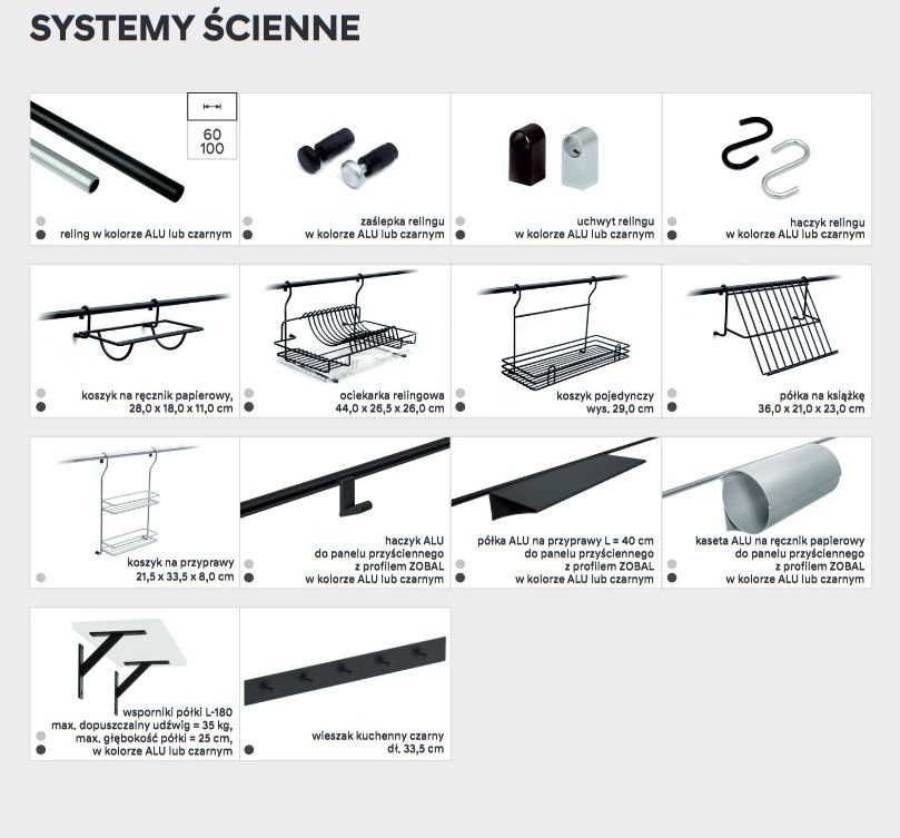 - W szafkach wiszących znajdują się zawieszki regulowane w dwóch płaszczyznach,