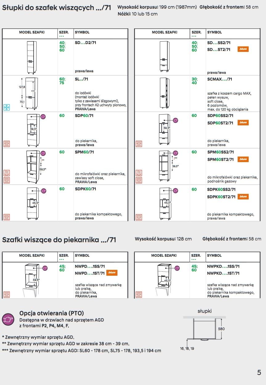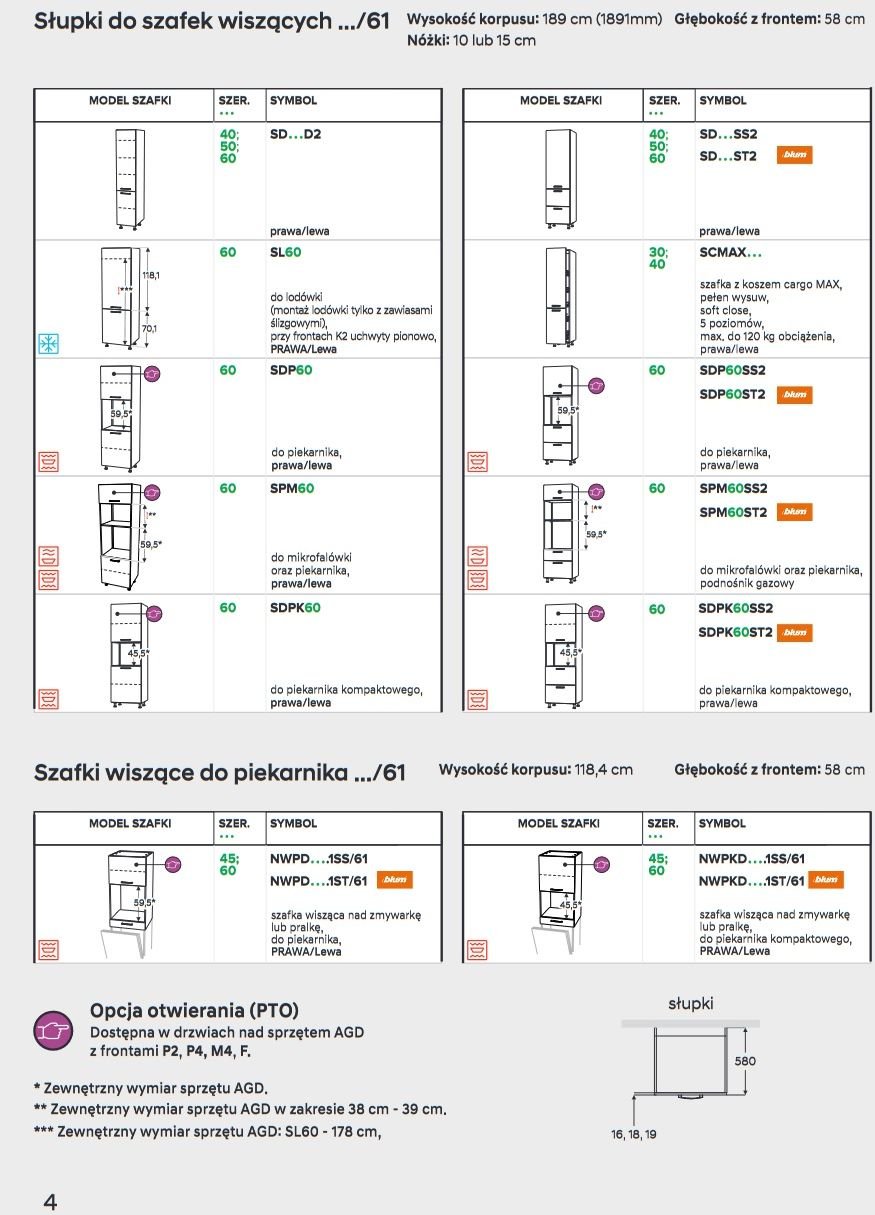 - SL60 – szafka do zabudowy lodówki z 2 drzwiami, szerokość 60 cm, wysokość 204,1 cm,